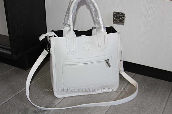 Дуже красива, стильна, зручна сумка, шикарної якості (екошкіра).У сумки три відділення + внутрішні та зовнішні кишені. Довгий ремінець - знімний.