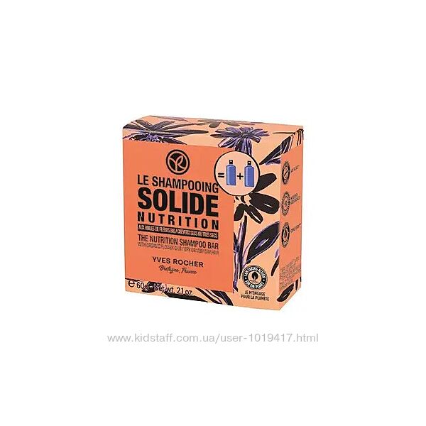 Подробное описание: Твердий Сухий Шампунь для Волосся Ніжність, Блиск, Живлення Біо Yves Rocher