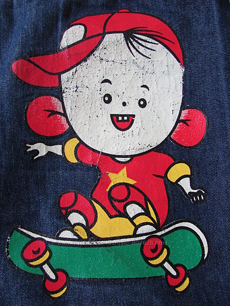 Красивые тонкие и прочные джинсы, можно носить летом и весной-осенью (поддев колготки). Не маркие, рисунок не облазит (только на попе немного потрескался, видно на фото), качество хорошее. Пояс на резинке.Замеры: длинна - 63, шаг - 40, посадка - 25, бедра - 40, пояс-резинка - 23 (тянется до 33), шир. штанины внизу - 13,5.