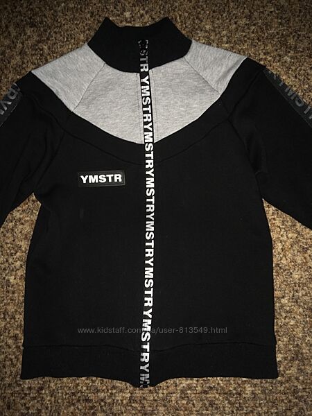 Кофта на молнии.цвет-чёрный с серыми вставками.Фирма-YMSTR. р.146.10-12 лет.