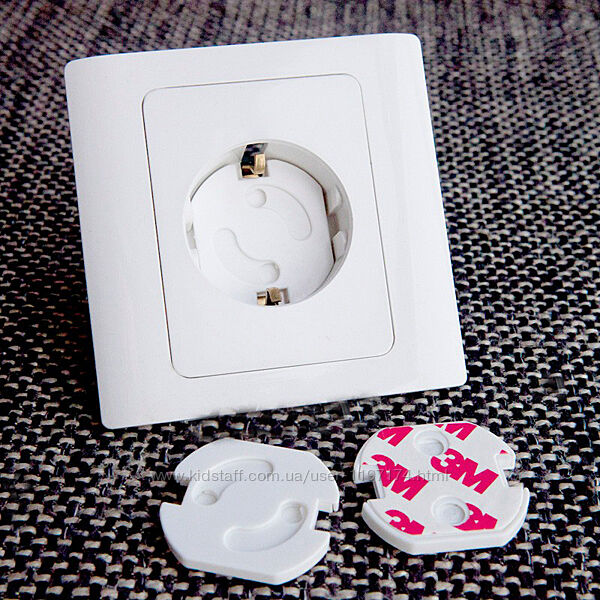 Заглушки для розеток самозакриваючи. Закривають та повністю ізолюють розетки з напругою. Кріпляться за допомогою липкої стрічки, яказнаходиться на звороті заглушки. Для використання вставляється вилка в