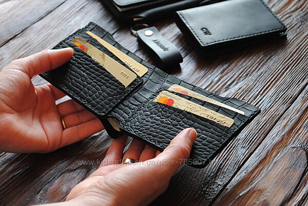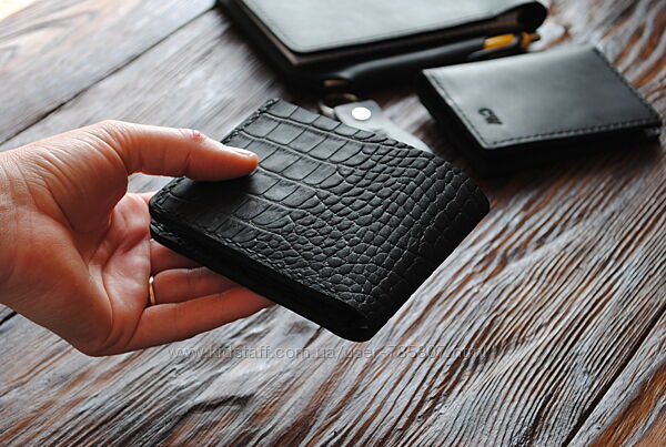 •Шикарна матова чорна шкіра тиснена під Кайман, гаманець в стилі повного мінімалізму 😎