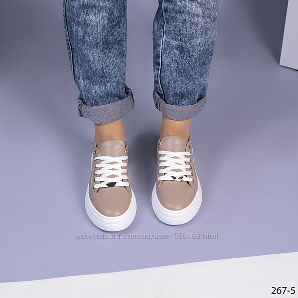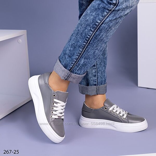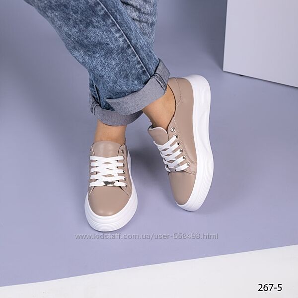 Подробное описание: Шкіряні жіночі кеди на білій підошві