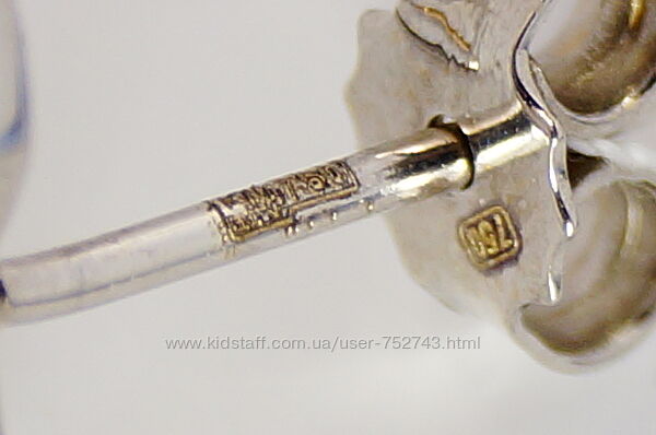 Золотые серьги пуссеты 750 пробы с бриллиантами 0, 06кт