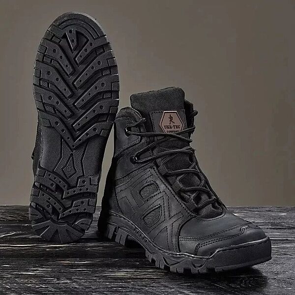 Удобные весенние демисезонные тактические военные черные ботинки.