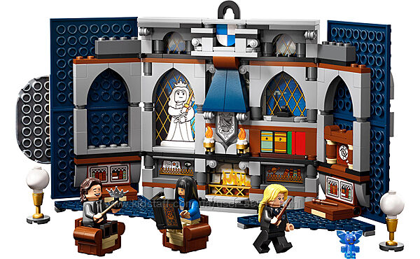 Якщо ви шукаєте подарунок для родича або найкращого друга, то набори LEGO Harry Potter - саме те, що вам потрібно. Вони надають безмежні можливості для творчих ігор дітям, які люблять конструювати і грати з кубиками LEGO.Шанувальники Гаррі Поттера демонструють гордість гуртожитку Рейвенклов завдяки цьому прапору LEGO Harry Potter, що складається з кубиків. Він має плитку з тисненням герба Рейвенклов і вішак для його розміщення на стіні. Прапор також відкривається, щоб показати чарівне втілення загальної кімнати гуртожитку Рейвенклов зі столом, книгою, двома кріслами й двома лампами, а також діадемою Рейвенклов. Випукла задня панель, що висувається, створює магічні 3D ефекти, як-от ілюзія глибини через вікна й мерехтіння полум´я в каміні. Оживіть сцени завдяки мініфігуркам Чо Чанґ, Луни Лавґуд і Майкла Корнера, а також корнуольським ельфам.