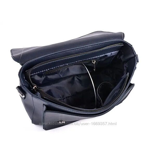 Сумка изготовлена из искусственной кожи, застегивается на молнию и кнопкиВнутри сумки один отдел и 3 кармана, один из которых на молнии