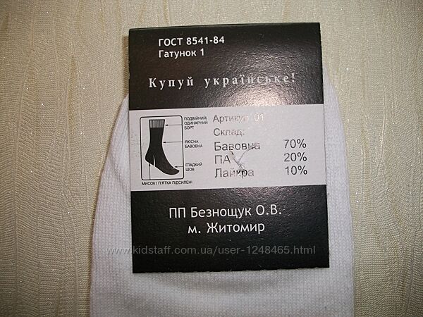 Подробное описание: Високі білі бавовняні шкарпетки Житомир