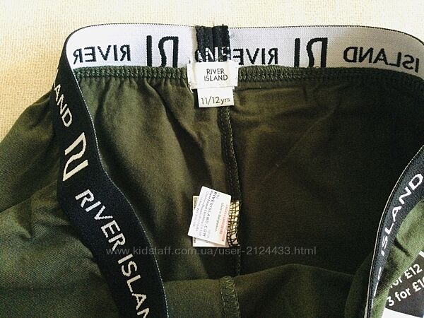 Трикотажні Шорти на хлопчика River Island. Хакки. 11- 12 рок. на широкій резинці фірмовий принт. натуральні 94% cotton? 4% эластан длина 50; талія 31; шаг 31Другие объявления продавца