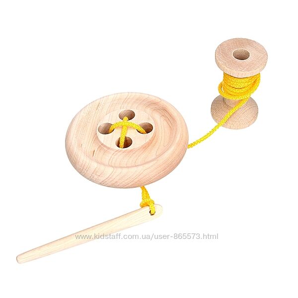Граючи малюк може не лише продівати голочку в отвори ґудзика, а і намотувати шнурок на котушку, що є додаткових завданням для розвитку дрібної моторики.