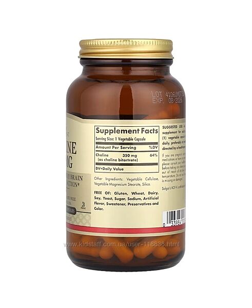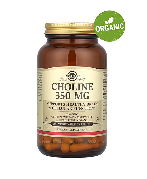 # Solgar, Холін, 350 мг, 100 рослинних капсулОПИС: