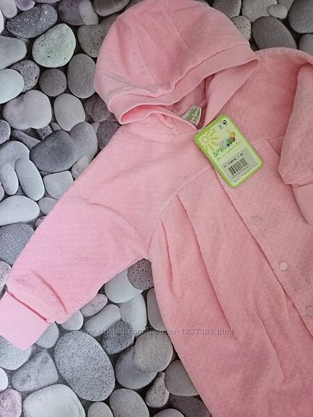 Комбінезон - чоловічок велюровий рожевого кольору ТМ Сміл, зріст 56-62. Має капюшон , на кулірній бавовняній підкладці, ручки закриваються . Ідеальний варіант для виписки із роддому та перших прогулянок вашого малюка.Склад верхньої частини: бавовна -80%, еластан -20%.Заміри по верху виробу: