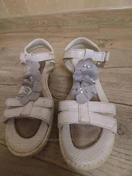 Дитячі білі босоніжки для дівчинки на липучках Tom.M.Взуття має шкіряну устілку з супінатором. Завдяки двом застібкам -липучкам відмінно підійдуть на будь-яку ніжку (Зручна липучка для регулювання повноти. Друга липучка служить для зручності одягання-знімання). Каблук Томаса робить модель ортопедичною.