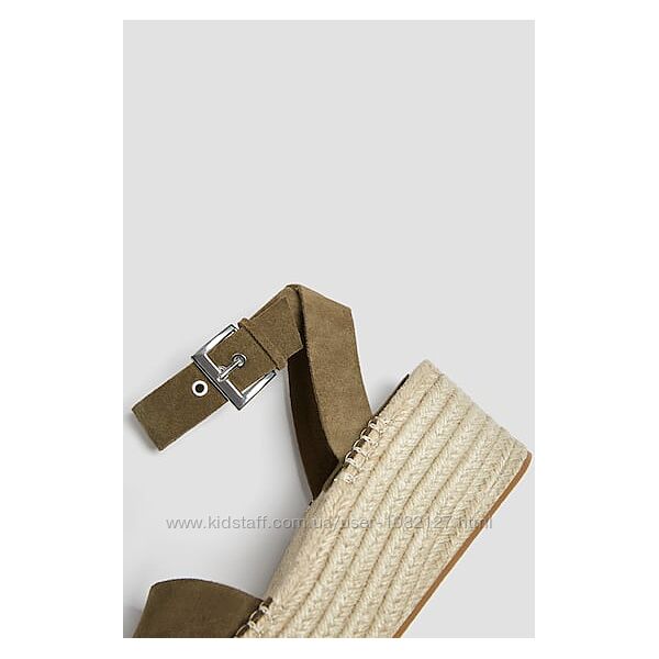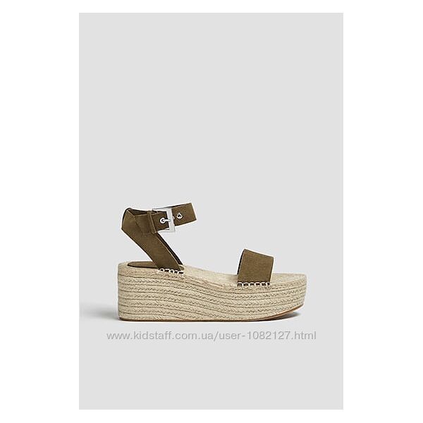 Супер стильні жіночі шкіряні босоніжки на платформі від відомого іспанського бренду Pull&Bear. Легкі і комфортні! Модний колір хакі! Джутові устілка і платформа. Підошва з фірмовим логотипом Pull&Bear. Чудова якість!Склад: 100% натуральна замша.