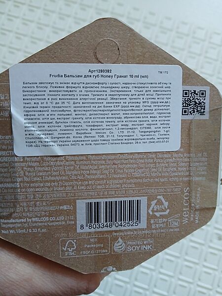 Активні інгредієнти: вітамін Е, гранат, м´ята, мед, олія ши (каріте), олії