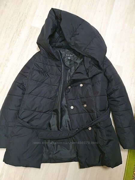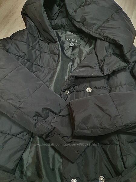 Демисезонная удлинённая курточка с объёмным капюшоном amisu