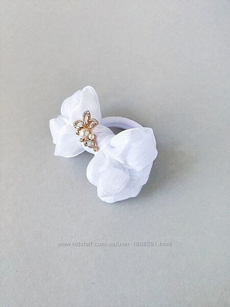 Подробное описание: Вишукані, білі бантики для волосся, ручної роботи.