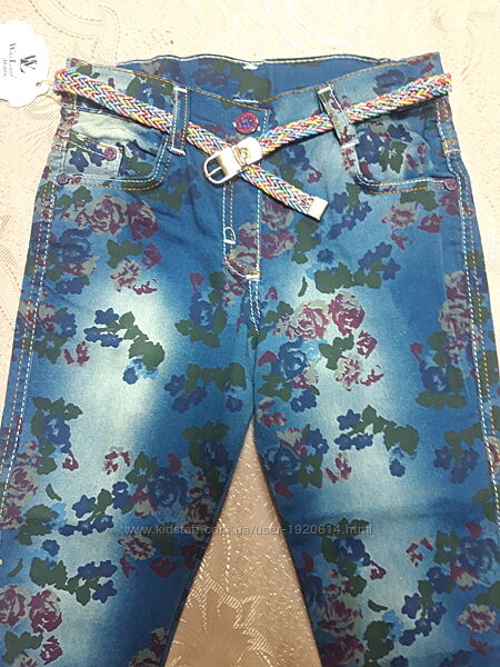 Подробное описание: Джинсы 8-12 лет на девочку в цветочный принт