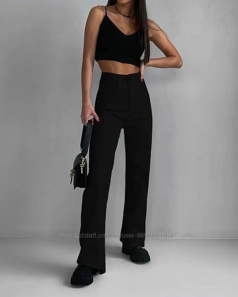 Штани пошиті з джинс-бенгаліну, який добре пропускає повітря, трохи тягнеться та зручно відчувається на тілі. При необхідності виріб можна носити з ременем.