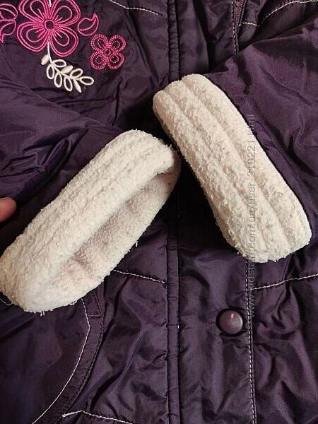 Б/в демі куртка для дівчинки 4-5 років, зріст 110 см. На флісі та на тонкому синтепоні, зверху не промокаюча плащівка. Заміри надам при потребі. Ціна 100 грн.