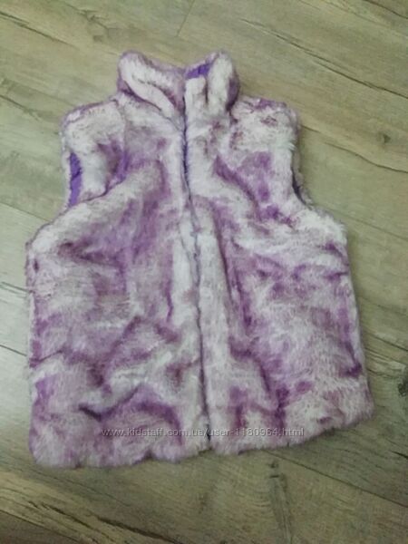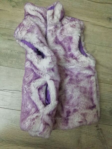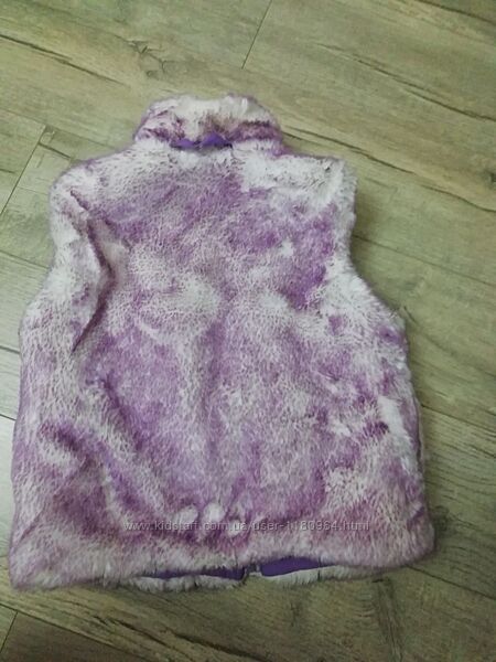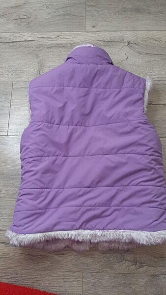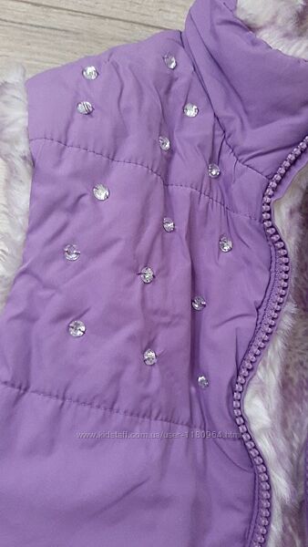 Двостороння жилетка для дівчинки 4 - 6 років фіолетова з камінчиками на штучному хутрі The Children´s Place в ідеальному стані.Розмір указано S/P 5/6.