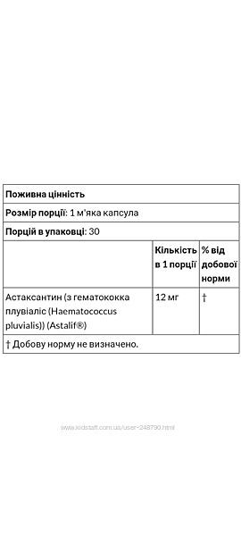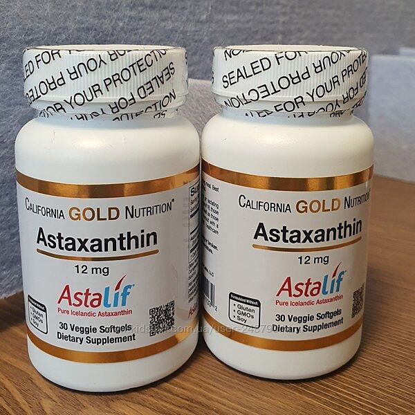 1) Астаксантин чистий ісландський США, 12 мг, 30/120 капсулCalifornia Gold Nutrition Астаксантин, чистий ісландський продукт AstaLif, 12 мг, 30/120 рослинних м´яких таблеток