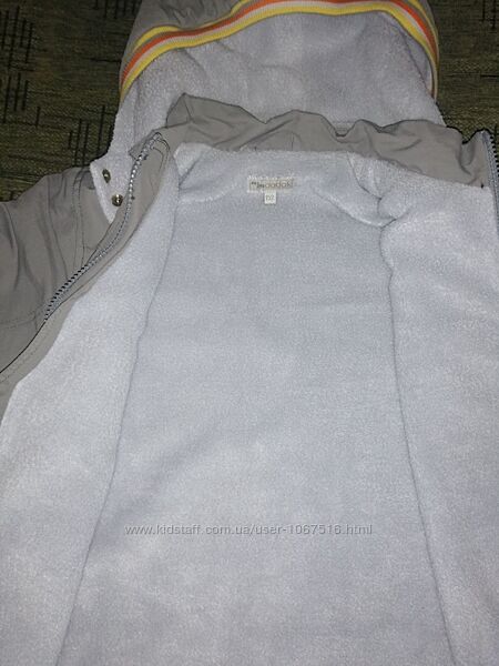 2. Фото 1,9-10. Стильная демисезонная куртка для мальчика. Капюшон отстёгивается, утеплен флисом. Манжеты рукавов и капюшон изделия оформлены трикотажными вставками, которые отлично защищают от холода и ветра. Украшена вышивкой и аппликацией. Утепленная флисовой подкладкой. Рукава без флисовой подкладки. Есть светоотражающие элементы. Состояние очень хорошее.