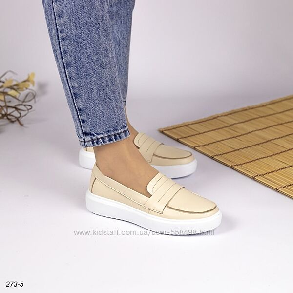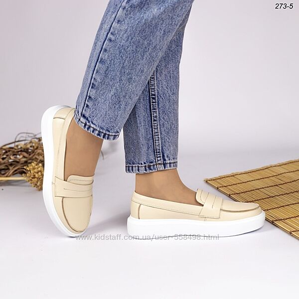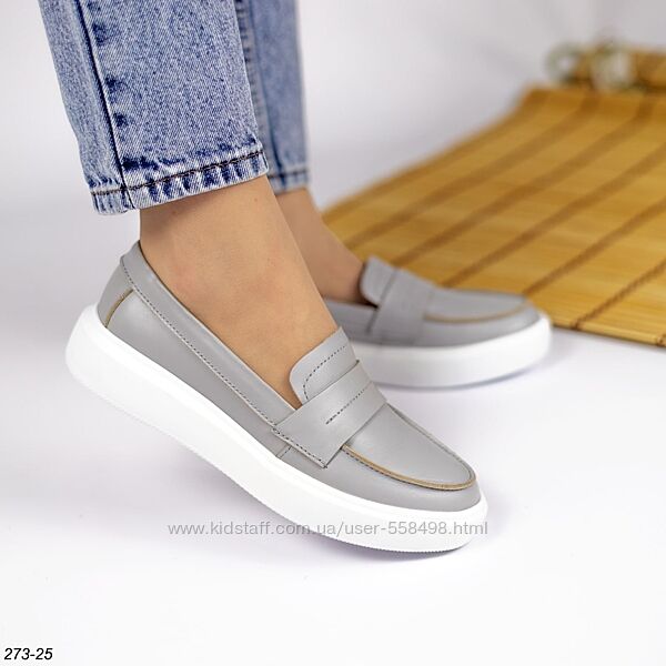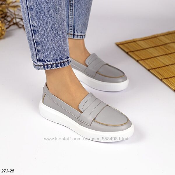 Подробное описание: Жіночі шкіряні мокасини бежевого, оливкового та сірого кольору