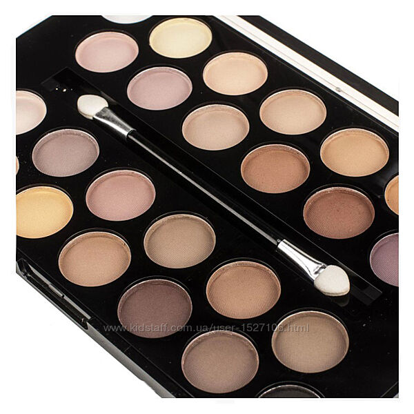 набор состоит из 26 матовых оттенков, гармонично соединяющихся между собой; приятная текстура, благодаря которой тени легко наносятся и растушевываются; не осыпаются и не собираются в комочки на протяжении всего дня; насыщенная пигментация; не вызывают раздражения при контакте с нежной кожей век; комплект дополнен двусторонним аппликатором.