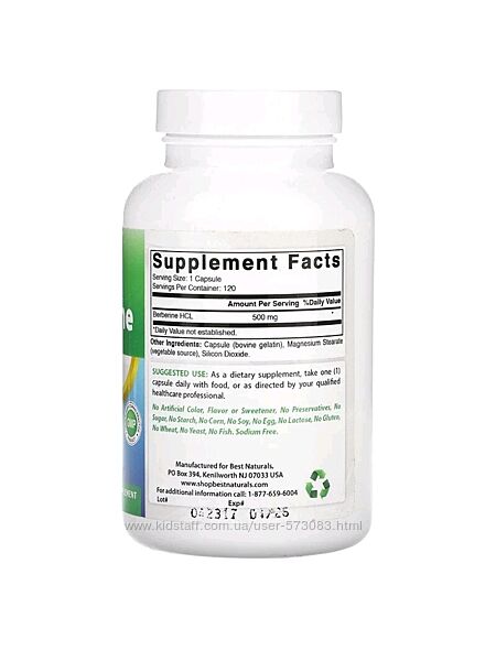 Подробное описание: Best Naturals берберин 500 мг - 120 капсул / США