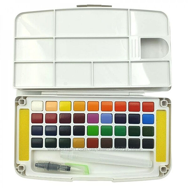 Подробное описание: Сухая акварель Marco Chroma 36 цветов с кисточкой-резервуаром для воды