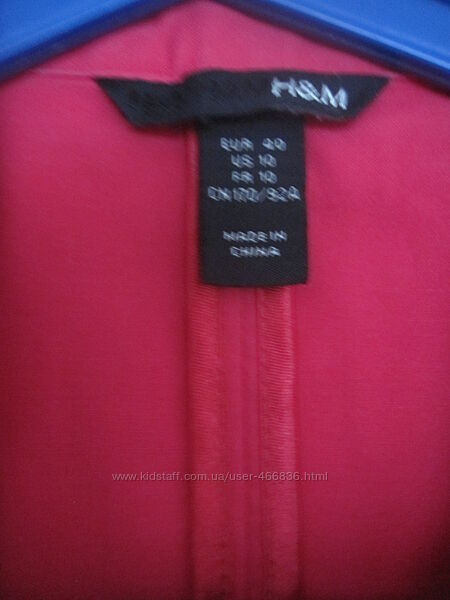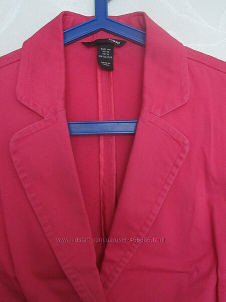 Жакетик кольору фуксія від H&M, 40 розмір,б/у в гарному стані. Склад тканини 97 хлопок,3 еластан.Заміри: