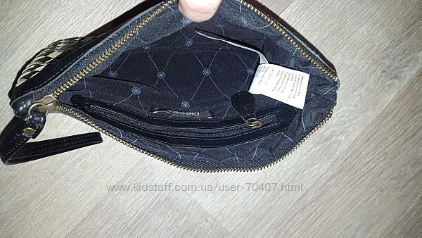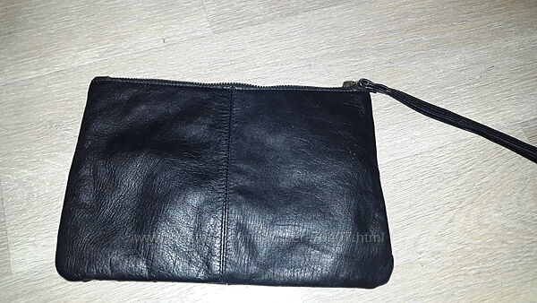 Кожаная, новая , лицевая сторона плетение из двух видов кожи, сзади -однотонная, внутри есть боковой карман на молнии и застегивается намолнию , ручка с петлей для руки