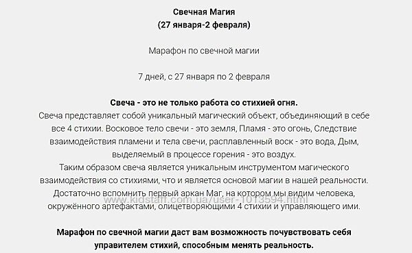 -Мы вместе проведем подготовку и каждый участник сможет провести свой Имболк, проведя ритуалы и обряды этого праздника Колеса года