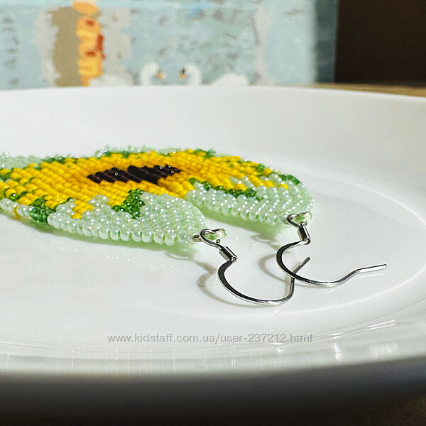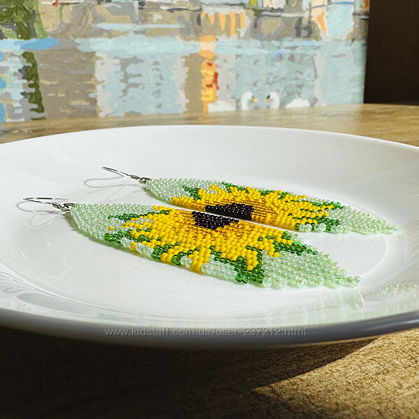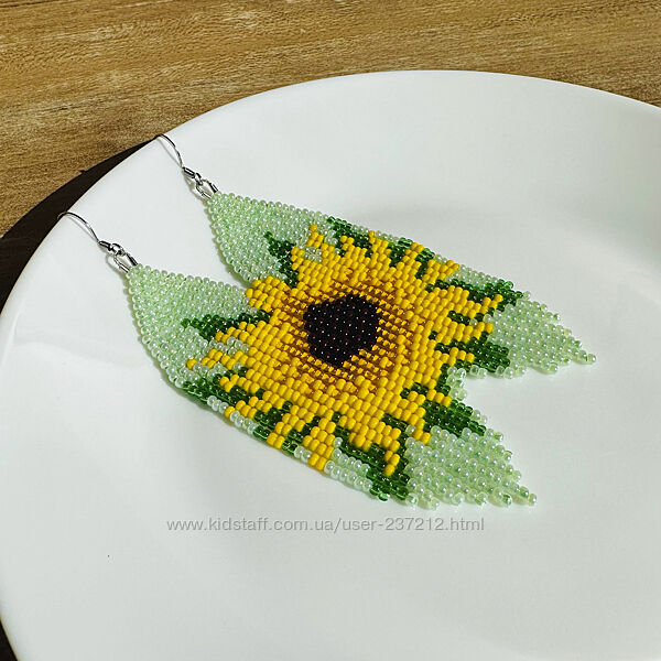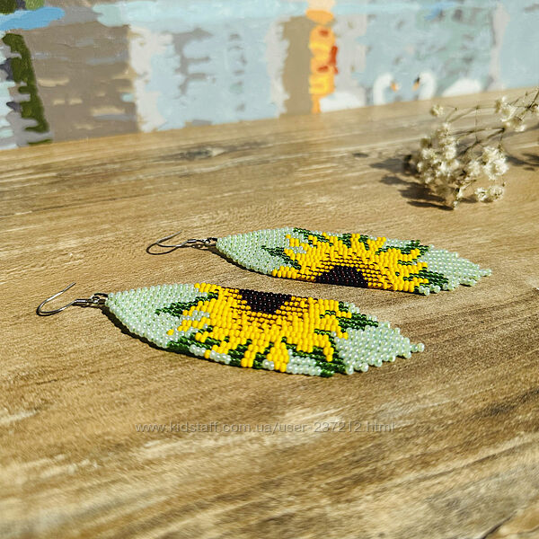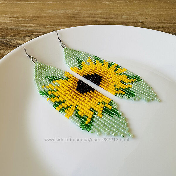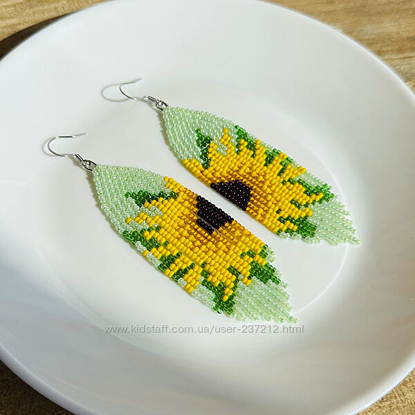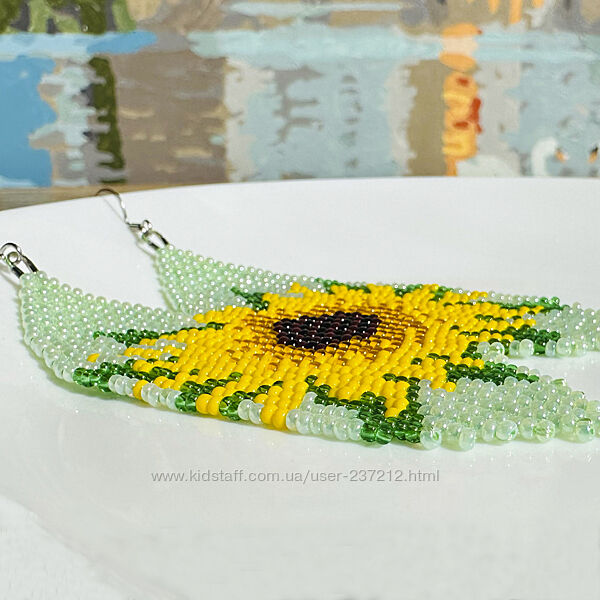 Яркие серьги с бахромой и узором в виде подсолнухов.Материал: чешский бисер, фурнитура из нержавеющей стали