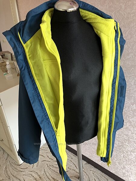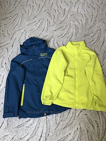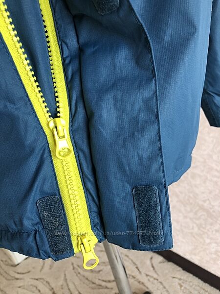 Курточка 2в1, верх вітровка,в середині флісова кофта яка відстібаєтся і ви маєте дві повноцінні речі. Капюшон вілстібаєтся, на рукавах ліпучки,по низу курточка стягується. Курточка має відблискуючі елементи.