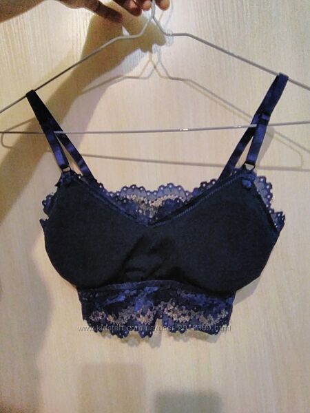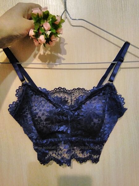 Модель 1.Мереживний топ-бра з регульованими шлейками залишився у темно-синьому кольорі 1 шт. Містить вкладиші. Матеріал надзвичайно ніжний, приємний до тіла, тягнеться.