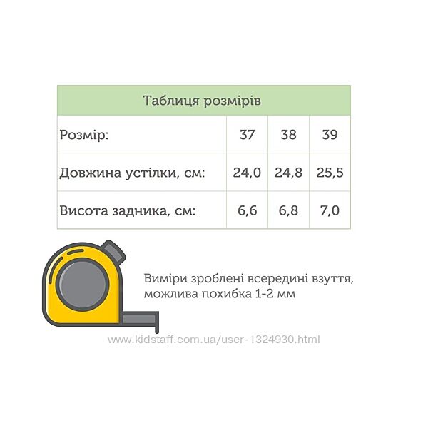 Стелька (см) | 20, 20.5, 21, 21.5, 22, 22.5, 23, 23.5, 24, 24.5, 25, 25,5 |