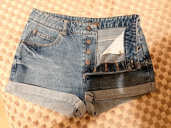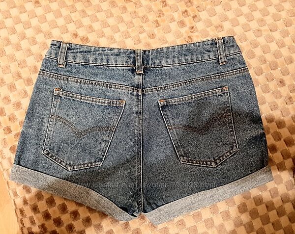 Шорти в ідеальному стані. Не тягнуться. Колір - темно-синій як на фото 1. Розмір 36/S. Заміри: довжина спереду - 26, сзаду - 32, пояс - 36, поб - 47, висота посадки - 26. На гудзикахДругие объявления продавца