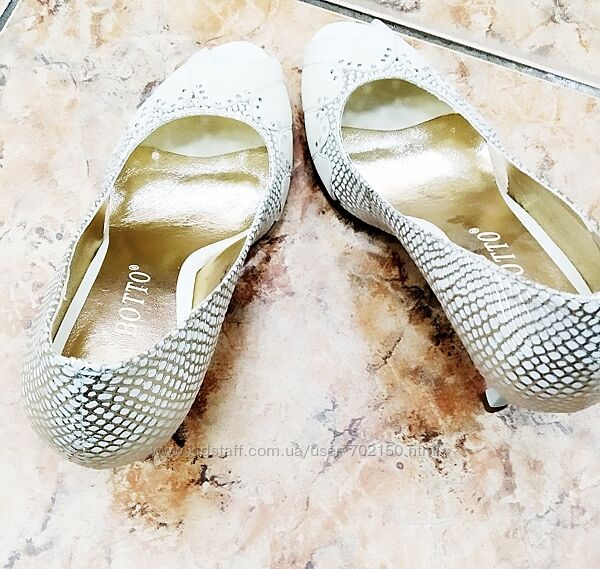 Бежевые кожаные туфли на маленьком каблучке