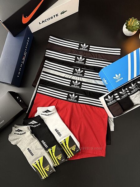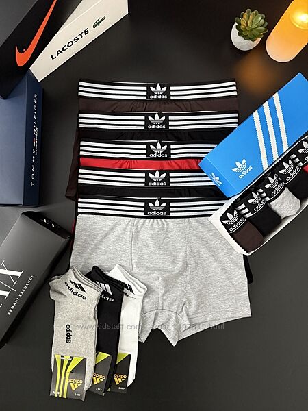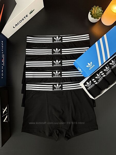 Подробное описание: Набор 5 шт. Мужские трусы боксеры Adidas в коробке. Чоловічі труси боксери