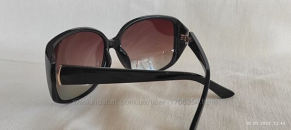 оправа глянцева коричнева, золотисті вставкина дужках, лінзи поляризовані коричневі,