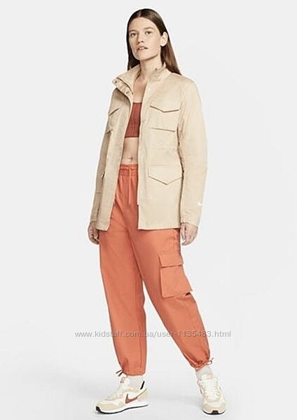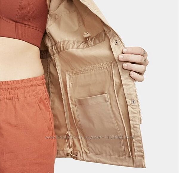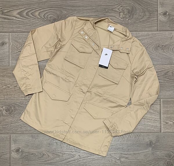 Куртка Nike M65 Essential Woven изготовлена из легкого полиэстера с водоотталкивающей пропиткой для защиты от непогоды. Многочисленные карманы придают практичность, а эластичные манжеты не только обеспечивают надежную посадку, но и предотвращают проникновение внутрь холода. Куртка дополнена логотипом Nike Swoosh, придающим ей спортивный вид. Застежка на молнии и кнопках. На талии и внизу можно регулировать кулиской.На бірці розмір 10/S.