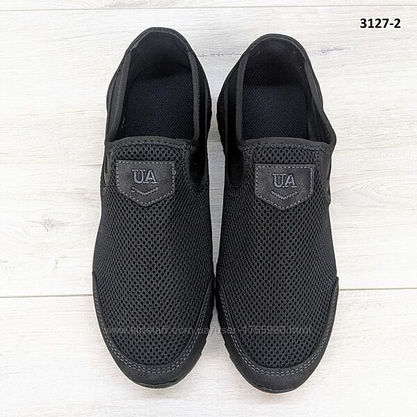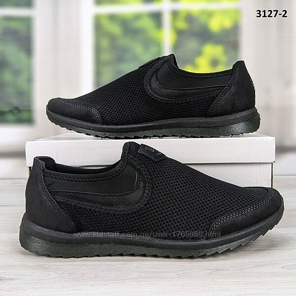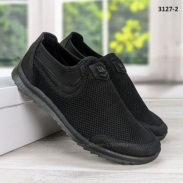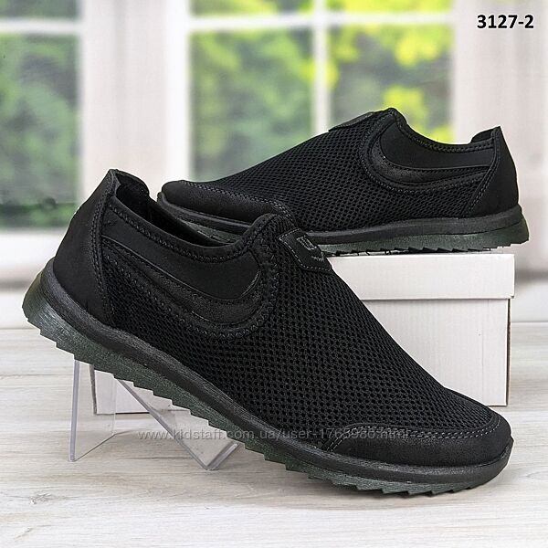 Мужские кроссовки мокасины, сетка, в черном цвете. Недорогие и качественные, от украинской фабрики Dago Style.Подошва ПВХ, эластичная и удобная.Верх из прочного текстиля (сетка), носок и пятка усилены.Сверху резинка, которая хорошо фиксирует ногу. Прекрасно подойдут, как недорогая повседневная и рабочая обувь. Изготовлены из качественных материалов. Весенне-летний вариант.