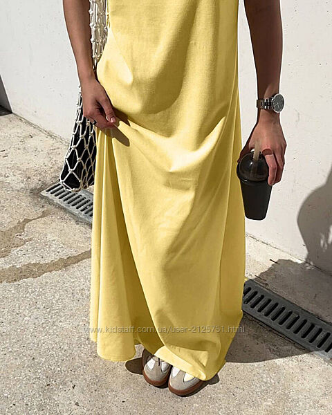 Подробное описание: Сарафан льон льняний жовтий лимон білий довгий