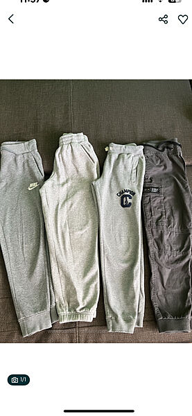 Головне фото. Перші зліва Найк 146 довжина 81/60 крок, другі найк 140 довжина 80/57, треті довжина 78/58 та четверті довжина 79/52 крок на зріст 140. Це максимально, але всі на манжетах або резинка, тому носили при меншому зрості.