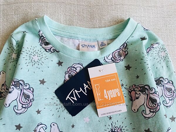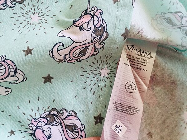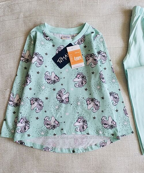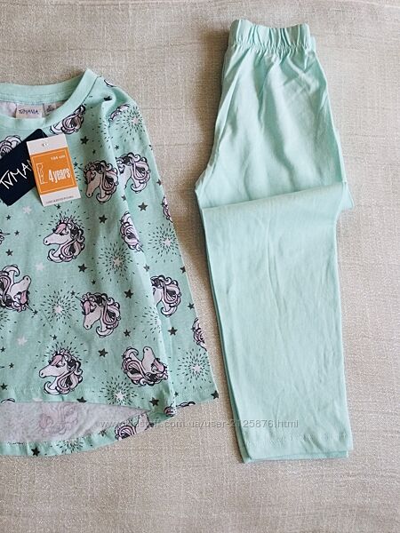 Disney США бірюзова піжама Однороги, нова коллекция 2023г. домашній комплект 100% bio cotton! Домашній комплект. спинка подовжена.по бірочці 4 роки довжина 40-45, ОГ 32, рукав від вороту 43, довжина 60, Шаг 43