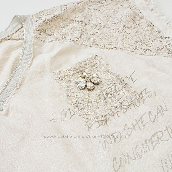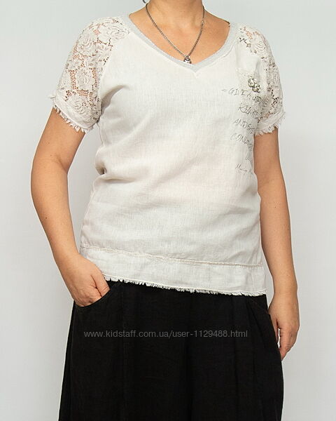Подробное описание: Блуза льняная с кружевом, Италия, лен, стразы.