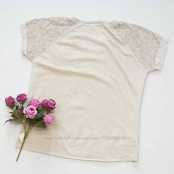 Тут просто все лучшее сразу--тканый лен, натуральное богатое кружево, трикотаж, люрекс, деликатно поблескивающий летеринговый принт и аппликация из крупных сверкающих страз. При всем многообразии фактур и декора, выглядит вещь очень стильно и не перегружено. Легко сочетается с любым низом, подходит для создания многослойных образов.
