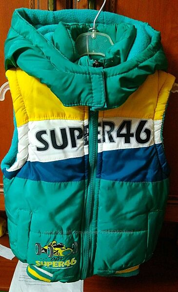 Демісезонна жилетка на хлопчика розмір 98/104,з капішоном,на флісі. Нова.